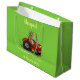 Cute happy cow driving a red tractor cartoon large gift bag