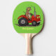 Cute happy cow driving a red tractor cartoon ping pong paddle