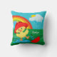 Celebrate the rain with this cute happy duck throw pillow. Pillow has a joyful yellow duck splashing in a puddle. The duck is wearing a polka dot hat and has a red umbrella. In the sky is a beautiful colourful rainbow, sun, clouds, and rain. Personalise the pillow with your child's first name.