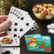 Celebrate the rain with this cute happy duck set of playing cards. Each card has a joyful yellow duck splashing in a puddle. The duck is wearing a polka dot hat and has a red umbrella. In the sky is a beautiful colourful rainbow, sun, clouds, and rain. Personalise the set with your child's first name.