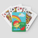 Cute Happy Duck in Rain with Rainbow Playing Cards