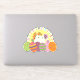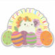 Cute, cartoon white cat and colourful eggs Happy Easter sticker!