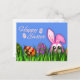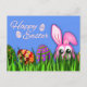 Cute Happy Easter Bunny and Eggs in Grass Postcard