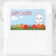 Cute Happy Easter Bunny & Eggs on grass Rectangular Sticker
