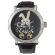Cute Happy Easter Bunny with Yellow Paw Prints Watch