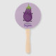Cute happy eggplant aubergine cartoon illustration hand fan