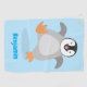 Send a happy hello from Antarctica from a warm fluffy penguin! This cute emperor penguin chick is jumping for joy. Drawn in fun cartoon style.
