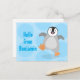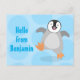 Send a happy hello from Antarctica! This cute emperor penguin chick is jumping for joy! Drawn in fun cartoon style.