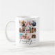 Modern happy family mug featuring an 18 photo collage of you, your family & friends, and the cute saying "family is anyone who loves you inconditionally" in a trendy script and serif font.