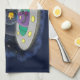 Cute happy fish ufo space cartoon illustration tea towel