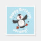 This design features a cute, happy puffin on a blue background in adorable cartoon illustration style. Lots of puffin fun!