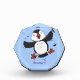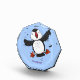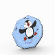 Cute happy flying puffin blue cartoon illustration photo block