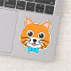 An illustration of a cute cartoon and adorable happy ginger cat with blue papillon. This animal kitten design is a gift idea for pet lovers.