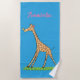 Cute happy giraffe with butterfly cartoon beach towel