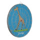 From the happy safari. This cute giraffe has a butterfly on his nose with a blue background.