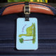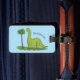 Cute happy green brontosaurus dinosaur cartoon luggage tag