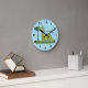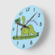 Cute happy green brontosaurus dinosaur cartoon round clock