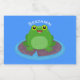 This cute happy green frog sitting on a purple lily pad is bright and adorable. Lots of amphibian fun drawn in happy cartoon style.
