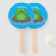 Cute happy green frog cartoon illustration hand fan
