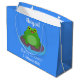 Cute happy green frog cartoon illustration large gift bag