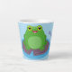 Cute happy green frog cartoon illustration latte mug