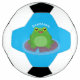 Cute happy green frog cartoon illustration soccer ball