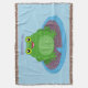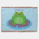 This cute happy green frog sitting on a purple lily pad is bright and adorable. Lots of amphibian fun drawn in happy cartoon style.