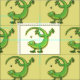 Cute happy green gecko greetings with bug cartoon fabric