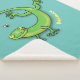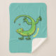 Cute happy green gecko greetings with bug cartoon sherpa blanket