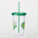 Cute happy green triceratops dinosaur cartoon acrylic tumbler