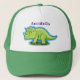 Cute happy green triceratops dinosaur cartoon trucker hat