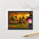 Wish everyone a happy Halloween with this cute postcard featuring an anime witch and a haunted house and pumpkin design!