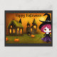 Cute Happy Halloween Anime Witch Pumpkin Postcard