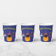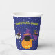 This cute Halloween paper cup features adorable kitties with witch hats and jack o' lantern on a purple starry background. Text "Happy Halloween" in spooky green. Easy to customise by clicking "Personalise". Perfect for your Halloween party.