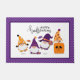 Cute Happy Halloween Gnome Pumpkin Fall Doormat features cute Halloween gnomes and a pumpkin with the text "Happy Halloween" in modern black typography. Perfect for Halloween decor and parties. Designed by ©Evco Holidays www.zazzle.com/store/evcoholidays