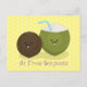 Add some tropical fun to your day with this cute coconut cartoon illustration with a yellow and white spotted background.