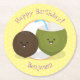 Cute happy kawaii coconuts cartoon illustration round paper coaster