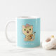 Cute Happy Musical Ginger Tabby Cat on Light Blue Coffee Mug
