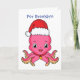 Cute happy octopus wearing Christmas hat cartoon Card