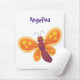 This cute orange butterfly will flutter by in a moment! Drawn in happy cartoon character style with a smiling face.
