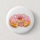 Cute happy pink doughnut character, made from a photograph and hand drawn features button
