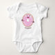 Cute happy pink glazed doughnut cartoon baby bodysuit