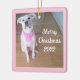 Cute Happy Puppy Dog Wearing Pink Scarf Square Red Ceramic Ornament