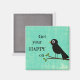 Cute Happy Quote with Bird design.. "Get your happy on" quote with cute little black bird sitting on a tree limb. Distressed country inspired background in aqua green with light yellow highlights. Inspirational and motivational.