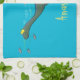 Cute, happy sea monster plesiosaur cartoon tea towel