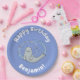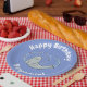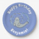 Cute happy seal and fish blue cartoon illustration paper plate