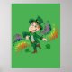 Cute happy smiling dancing leprechaun, a rainbow poster