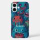 A phone case docorated with a digital drawing with a collection of cute happy monsters with big smiles and big eyes.