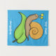 Cute, happy snail on a leaf cartoon illustration tapestry
