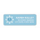 Return address labels with a cute happy white snowflake on a blue background. Fonts and colors can be customized with the design tool.